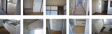 | POINT | マンションの一室まるごと爽やかに一新したリフォーム。床は全体にフラットにして、遮音性を高めるためにコルクフロアを入れたりしています。キッチンはコンロの交換や上部グリルの撤去をして、下部には電子レンジを収納できるようにするなど使いやすさを追求しています。お風呂はユニット交換し、洗面台もセンスアップしました。洗面室壁面のガラスブロックがお洒落のポイントです。 ■ 施工前 ![]() |
