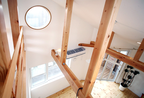 地下防音室の天井高をとるためには、ちょうど下が地下室の天井にあたる1階床の中央部分を持ち上げて考える必要がありました。そのためにできる段差を逆に利用してフロアにアクセントをつけたり、こあがりを設けるなどしてスペースをフル活用するプランをプレゼンテーション。間取りは1階が玄関、和室(こあがり)、寝室、2階に広々とした吹抜けのリビング、無垢のパイン材を用いたフローリングの広々とした空間は、いずれお子様が大きくなった時に個室として仕切れるためのスペースも考慮されています。