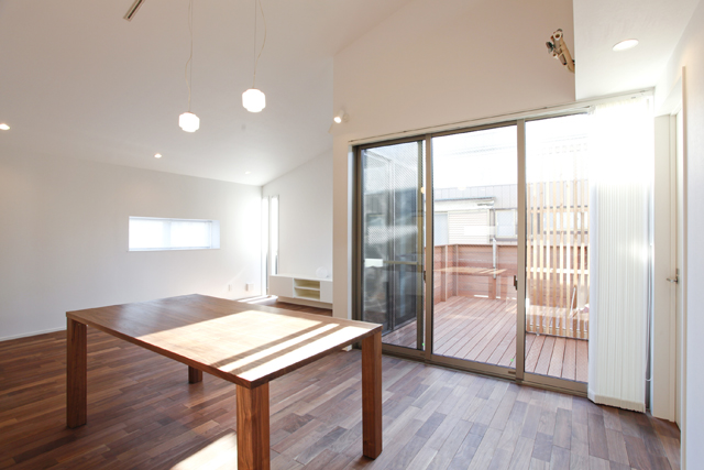 | POINT | H邸は弊社不動産部(アルバハウジング)とともに、土地のご検討段階から建物のご提案をさせていただきました。 おおらかなご家族で、奥様が打合せ中の間はご主人がお子様をあやされているなど、ほのぼのと、でもしっかりと協力し合い家づくりをされている姿が印象的でした。とくに奥様は最初、スクラップブックにいろいろな資料を集めて「これがやりたいんです!」と目をキラキラさせていらっしゃいました。 設計面で熟考したことは、東道路の敷地で南側の建物がめいっぱいこちらの敷地に寄って建っていたため、当初より暗くならないかとお施主様が日当たりを気にされていらっしゃった点です。何度もお打合せを行い試行錯誤の結果、2階のバルコニーを囲むようにコの字状に建物をプランニングし、バルコニーはデッキとつなげて広々とさせました。結果は大成功。朝から夕方まで光の動きを感じることの出来る明るい家になりました。リビングの低いところからロフトへ向かってスッと伸びていく勾配天井が、設計者としては個人的に気持ちの良いポイントです。 やりたい事が盛り沢山の本当に可愛らしい奥様、そしてそれを優しく見守るご主人様、元気な子供達・・・絵に描いたような幸せご家族。自称“ヒカリ物好き”の奥様のご趣味もあちらこちらに散りばめられた宝石箱のようなお家、それはまるでご主人様からご家族へのプレゼントのように感じました。 |
