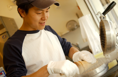 茅ヶ崎駅南口からまっすぐ海へ向かう道「雄三通り」に2005年3月オープン。エバーグリーンホームと本当に目と鼻の先といった感じのご近所さん。好きなアイスクリームに、フルーツやお菓子、ナッツやマシュマロといったバラエティ豊かなトッピングを選んだら、お店のひとがマイナス20℃の大理石の上でコテを使ってミックスしてくれます。 まるでワイキキで人気のアイスクリームショップのような楽しさや美味しさがいっぱい。美味しい、楽しい、そんな雰囲気がふんだんに感じられるようなお店になりました。