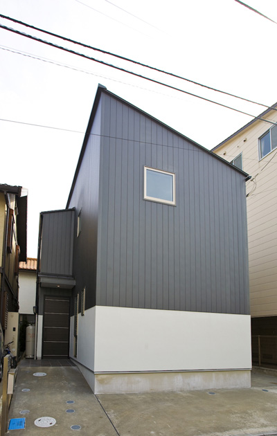 | POINT | 「家族が自然と集まれる家を」というご要望のもと、家の中心にリビングを配置し、家のどこに居ても家族の気配が感じられ、またどこへ行くにもリビングを通るようなデザインにしました。全体的に明るくなるよう床・壁・天井とも白を基本に、アクセントカラーはリビングのTVボード、ローテーブルのブラックウオルナットの深い紫茶と壁面のブルーグレイに。落ち着きのある「大人可愛い」色合いで引き締めました。 ステンレスやスチールの建具、階段・デッキ・格子などは、お施主様も一緒に構造や意匠など頭をひねってつくり上げた結果です。ご覧の通り既製品にない手造り感と温かみのある仕上がりになりました。 |