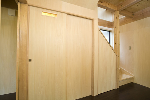 | POINT | ご理解いただけない方には“手抜き”と勘違いされそうですが、実はとても奥が深い苦心のミニマム住宅、それがY邸です。無駄を極力省いて構造体と素材を生かす、このコンセプトを実現するためには、お施主様との入念な打合せはもちろん、関係スタッフとの密なコミュニケーションが不可欠でした。実際、現場で何度も大工さんや設備屋さんが頭を抱えてしまうことはありましたが・・・。 お施主様は自動車の電機設備の設計に携わっていらしゃる方で、お持ちになっているアイデアや情報などを逆に私達が参考にさせていただくこともありました。心から現場を楽しんでくださったようです。 お引渡しの際に「家が建ってうれしい、けれど何だか寂しい」とおっしゃられたことが印象的でした。 |