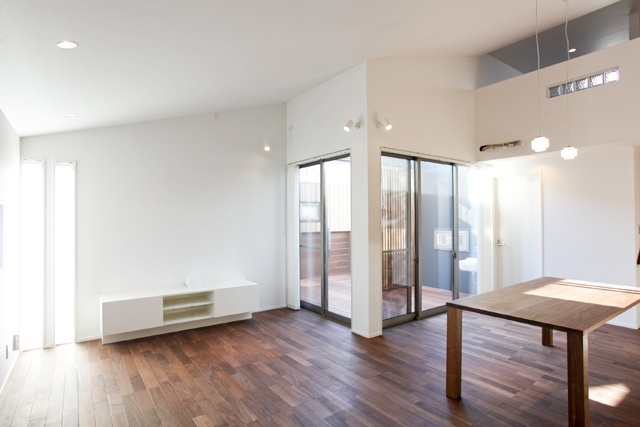 | POINT | H邸は弊社不動産部(アルバハウジング)とともに、土地のご検討段階から建物のご提案をさせていただきました。 おおらかなご家族で、奥様が打合せ中の間はご主人がお子様をあやされているなど、ほのぼのと、でもしっかりと協力し合い家づくりをされている姿が印象的でした。とくに奥様は最初、スクラップブックにいろいろな資料を集めて「これがやりたいんです!」と目をキラキラさせていらっしゃいました。 設計面で熟考したことは、東道路の敷地で南側の建物がめいっぱいこちらの敷地に寄って建っていたため、当初より暗くならないかとお施主様が日当たりを気にされていらっしゃった点です。何度もお打合せを行い試行錯誤の結果、2階のバルコニーを囲むようにコの字状に建物をプランニングし、バルコニーはデッキとつなげて広々とさせました。結果は大成功。朝から夕方まで光の動きを感じることの出来る明るい家になりました。リビングの低いところからロフトへ向かってスッと伸びていく勾配天井が、設計者としては個人的に気持ちの良いポイントです。 やりたい事が盛り沢山の本当に可愛らしい奥様、そしてそれを優しく見守るご主人様、元気な子供達・・・絵に描いたような幸せご家族。自称“ヒカリ物好き”の奥様のご趣味もあちらこちらに散りばめられた宝石箱のようなお家、それはまるでご主人様からご家族へのプレゼントのように感じました。 |