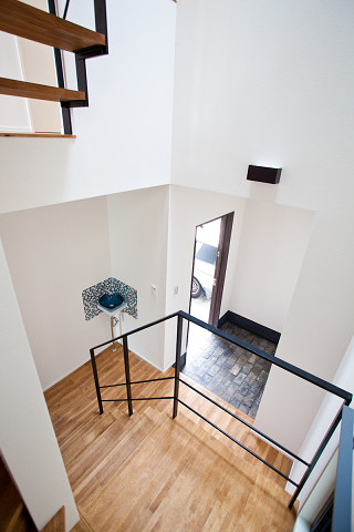 | POINT | お施主様の奥様がOBのお施主様(茅ヶ崎M様)のご友人で、その建物をご覧になられたことからご来社くださいました。 お付き合いは土地の購入前から。土地を拝見し、設計面その他でいろいろとアドバイスもさせていただきました。ちょうど東北大震災の前後の着工ということもあり、ご自身でも何か協力したいというお気持ちから、太陽光発電の設置も行いました。設計面で注目していただきたいのは、玄関上がってすぐの階段をからめた吹き抜けと、リビングの勾配天井による空間の演出、そして格子によるロフトとの緩やかなつながり、などです。またビルトインガレージの外壁羽目板が、外観のアクセントとなっています。 A邸は海まで徒歩1分の立地。ご夫婦共にサーフィンをされるので、砂などが目立たないようにと玄関のたたきに上海レンガを敷きました。 床材のラスティックバーチのザラついた風合いと、上海レンガの質感の相性が良く、海沿いの家としてふさわしい雰囲気が出せたと思います。 上海レンガ、サッシ枠、階段手摺と、ブラック色で引き締め、全体的にシックな印象に仕上げました。 |