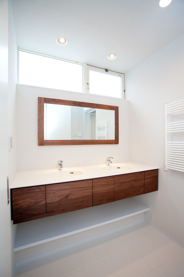 | POINT | 土地のご相談から始まり、建物完成までお付き合いは2年ほどさせていただきました。ご主人様のお父様はスイスで建築のお仕事をされていることもあり、プランを提出するたびに、模型を自作され、持参されてていたことが印象的でした。 土地の形状・大きさ、全体のご予算から家を建てる全ての面でご相談を行ったことは、営業担当のHにとっては初めての経験でしたが、最終的には完成内覧会を行わせてくださり(2011年10月)、ご来場くださった皆様にも好評で、良いお宅が完成したと感じています。 邸は、和の要素を取り入れたいとのご要望があり、玄関まで続く細い路地をイメージしたアプローチと、玄関と続く坪庭をご提案しました。大きなLDKスペースをご希望されていたので、2階に水廻りや個室等を集め、1階は無駄を極力省いて30帖ほどのLDKスペースをとりました。 奥様のお料理教室としての空間も兼ねたダイニングキッチンスペースは、オープンな空間なので動線と調理用品・食器などの収納スペースをうまく組み合わせ、使いやすさと見た目にも苦労しました。 家具はお手持ちの道具の寸法を測り、無駄なく効率よく収納できるように打合せしました。お打合せは、お客様と一緒にアイデアを出し合いながら、構築していった感じです。 |